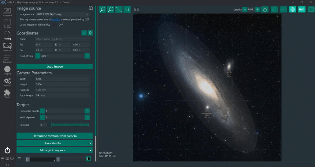 Once the Benro Polaris completes the GOTO to Andromeda, tapping on the telescope coordinates in N.I.N.A. reads the coordinates from the Benro Polaris. This reflects the target that the Benro Polaris has in view.