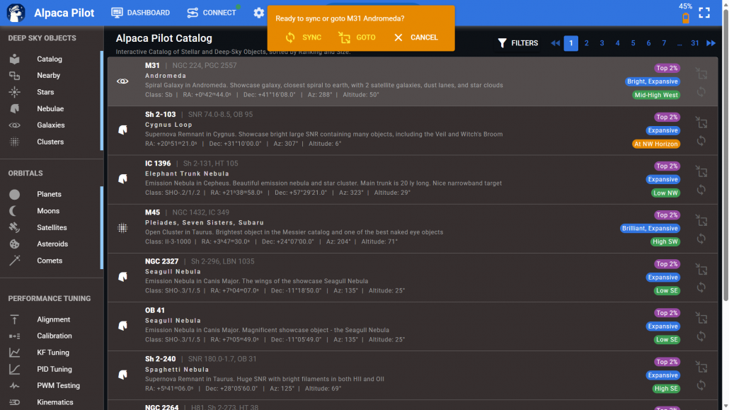 Access Alpaca Pilot via your browser and look around. Get familiar with it. The Alpaca Pilot can be considered as the replacement for the Astro module on the Benro Connect app, albeit with more muscle and accuracy.